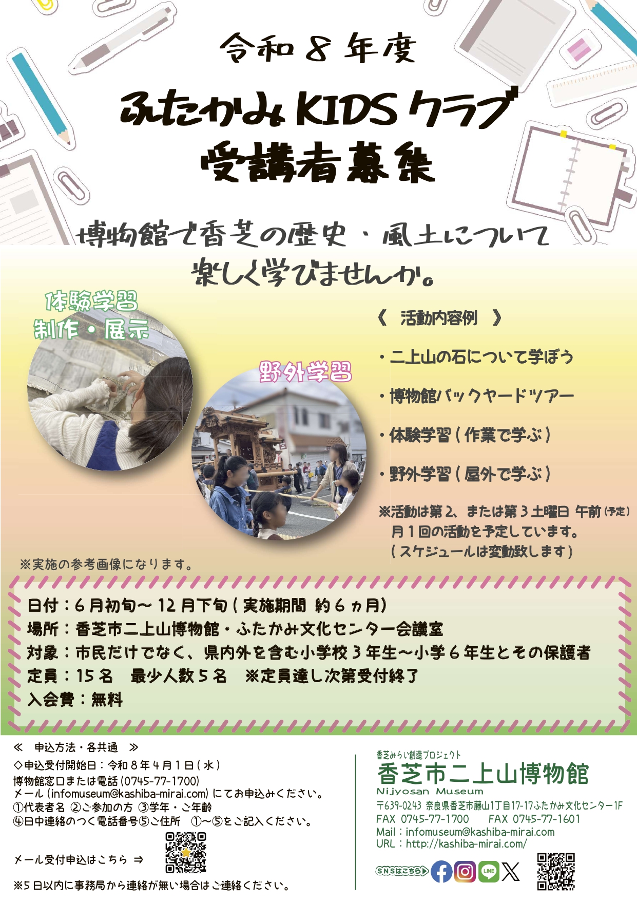 メール(infomuseum@kashiba-mirai.com) にてお申込みください。