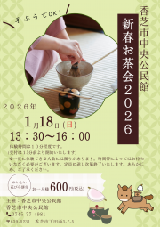 中央公民館 新春茶会20261年の幸福と健康を願って、新年のお菓子(花びら餅)とお抹茶をお楽しみください。