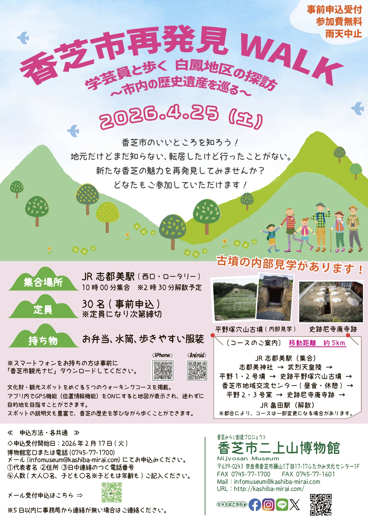 メール(infomuseum@kashiba-mirai.com)にてお申込みください。